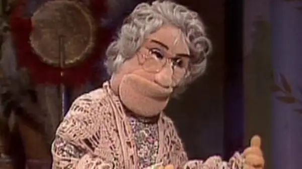 アグネスはまた、オープニング番号の間に「マペットは映画に行く」と、エピソード102の英国のスポットである「スウィフトウィット」スケッチで「マペットトゥナイト」にも現れました。彼女はバフィーのために演奏しています。アグネスには兄弟のノルムがいて、彼女は高く評価していません。彼女の明らかな嫌悪感は最終的に彼女のより良い判断だったかもしれないものを曇らせ、その結果、彼女がスヌーキー・ブライヤーから与えられたすべての手がかりは、彼女の兄弟への否定的な意味合いで返されます。彼女の忘却にもかかわらず、彼女はバフィーの運命にいくつかの小さな苦痛を示します。ちなみに、アグネスはエピソード204で見られるダンスのおばあちゃんのメンバーでもあるようです。